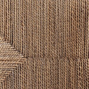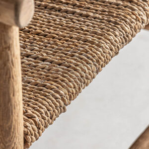 Sillón Manhula de estilo colonial fabricado en madera de teka en color marrón claro combinado con fibra natural en color marrón claro.
