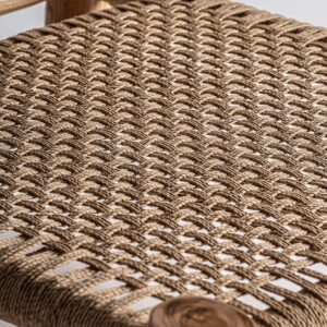 Sillón mouzaki de estilo vintage fabricado en madera de teka en color marrón combinado con cáñamo.