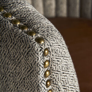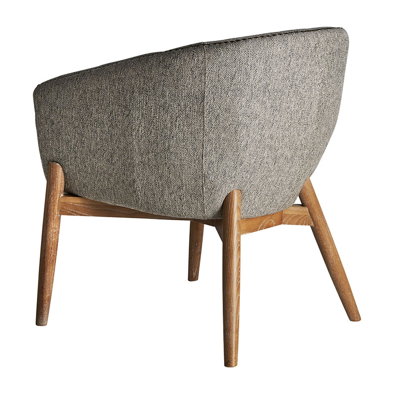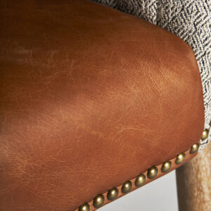 Sillón neive de estilo vintage fabricado en madera de fresno en color gris combinado con poliéster y piel.