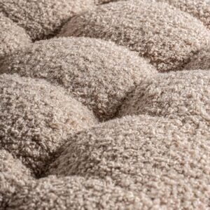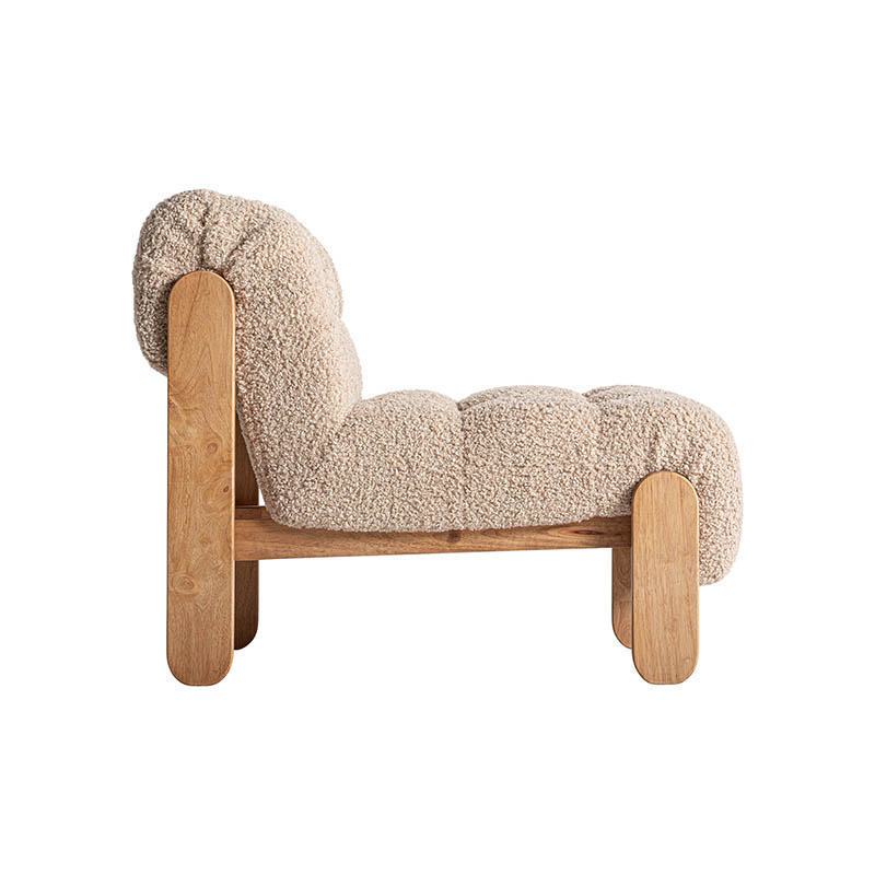 Sillón neyprat de estilo colonial fabricado en poliéster en color beige combinado con madera de pino en color marrón y espuma.