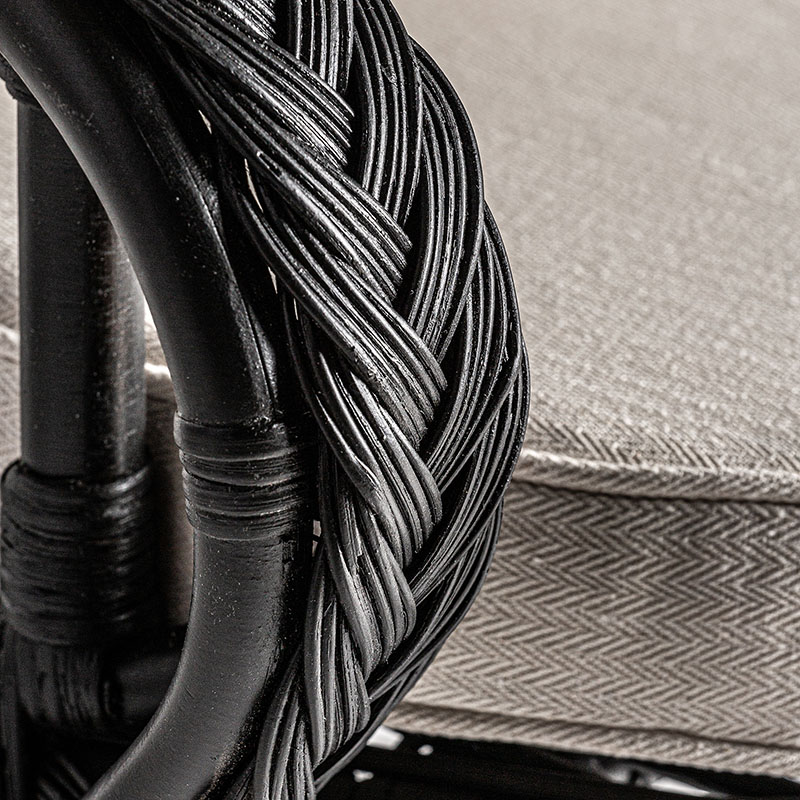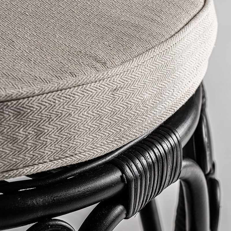 Sillón Nulvi de estilo contemporáneo fabricado en ratán en color negro combinado con algodón.