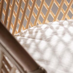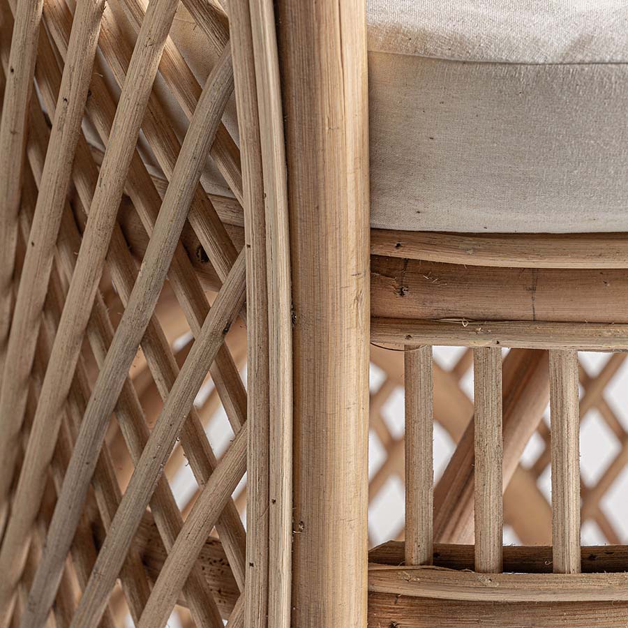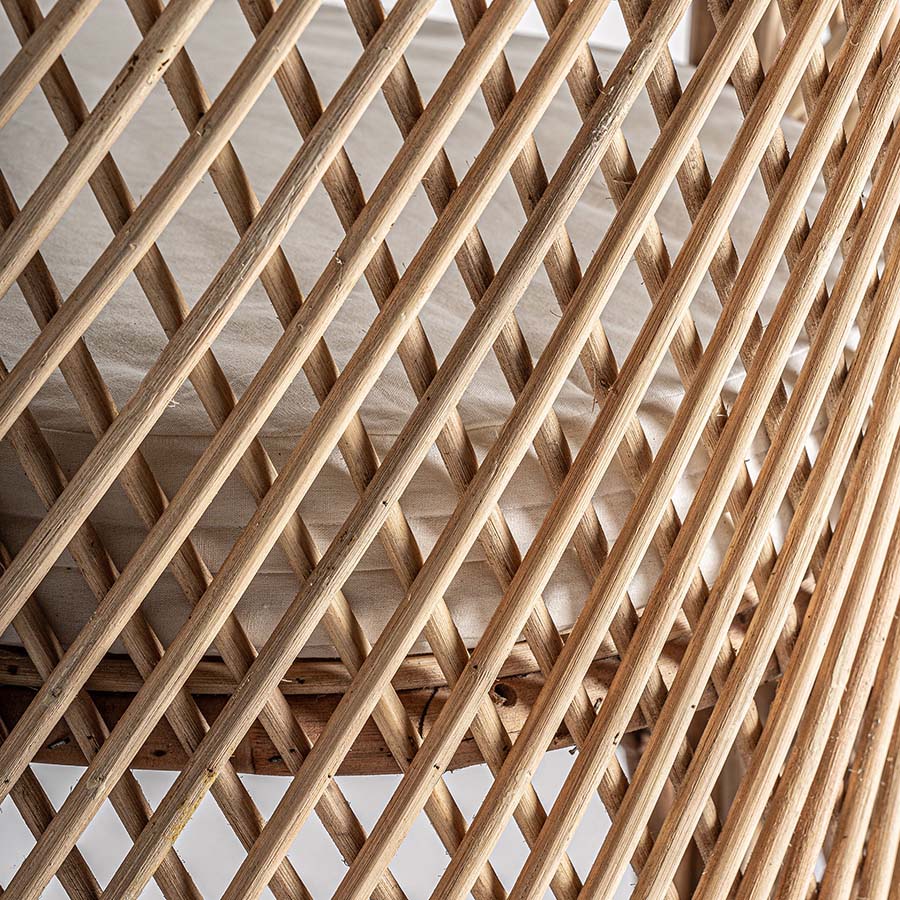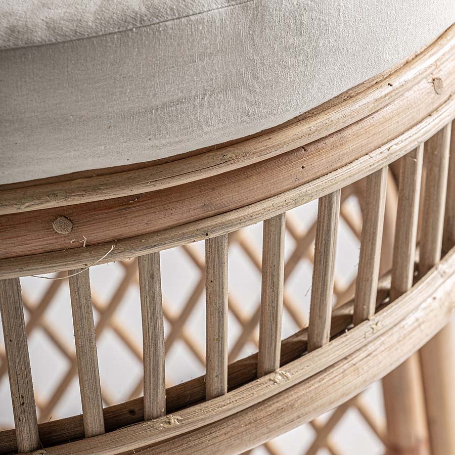 Sillón Peacock de estilo boho fabricado en ratán en color marrón claro.