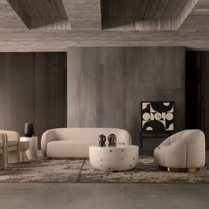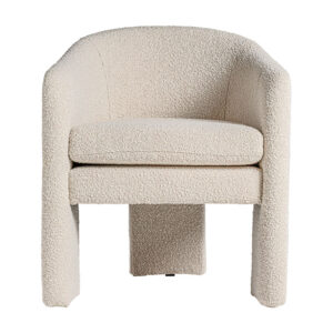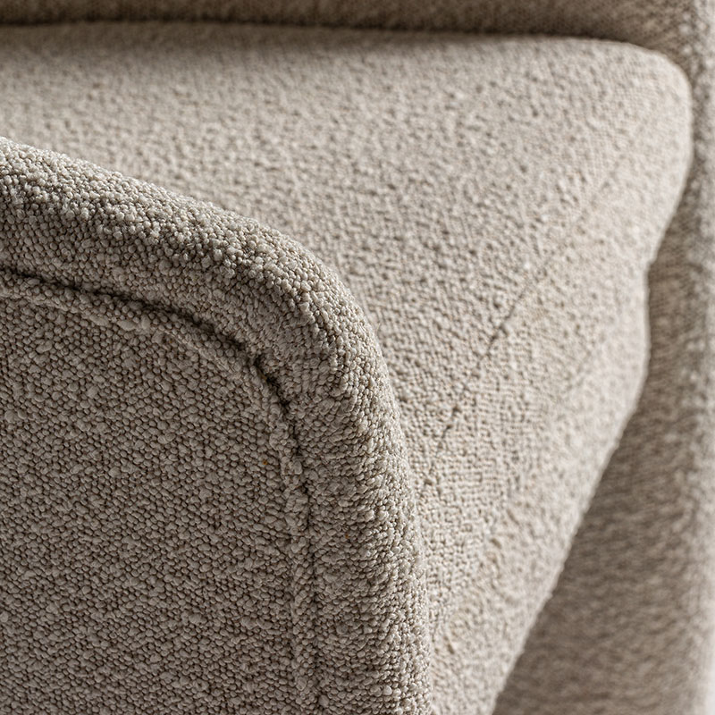 Sillón Prati bouclé de estilo colonial fabricado en algodón bouclé en color blanco roto combinado con madera de pino y espuma. Producto desenfundable.