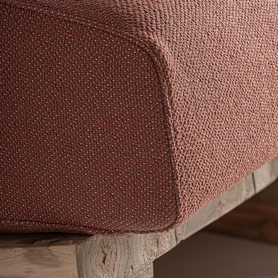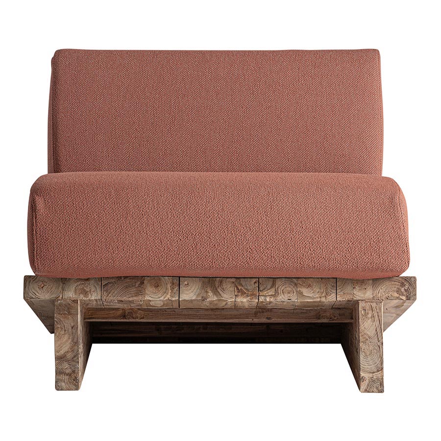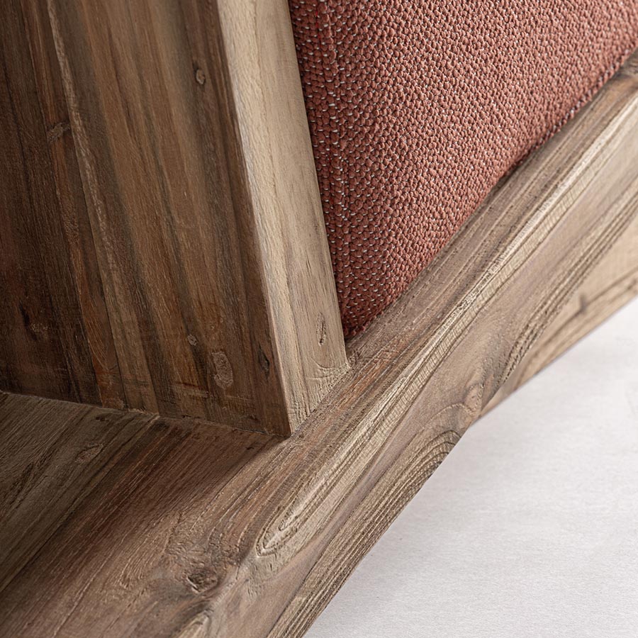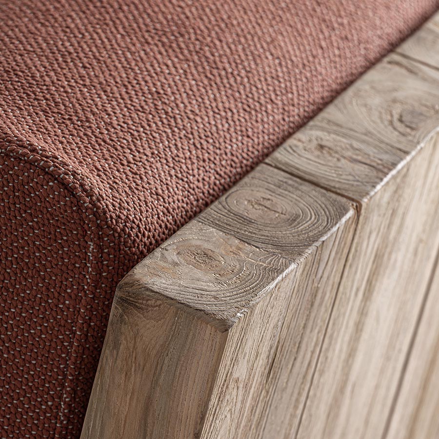 Sillón Pure fabricado en madera de teka reciclada en color marrón combinado con polipropileno reciclado en color teja y espuma.