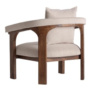 Sillón racoud de estilo contemporáneo fabricado en madera de mango en color marrón combinado con madera dm en color beige y poliéster. Producto desenfundable.