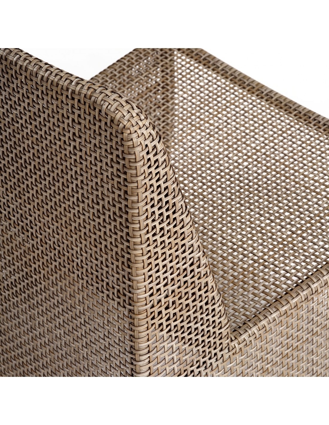 Sillón de exterior de ratán sintético color lino. Una pieza que aporta estilo natural a tus ambientes de exterior de jardín o porche. Crea una zona chill-out ideal con esta pieza original.