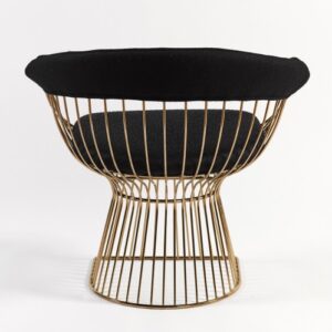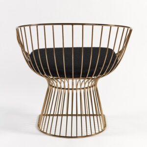 Damos la bienvenida a este fabuloso e impresionante sillón refinado y exótico. Déjate seducir por el estilo elegante y actual que aporta este espectacular sillón de metal de color oro. Sillón de diseño con cojín de color negro. Da un aire exótico a tu interior y aprovecha el descanso bien merecido cómodamente en este sillón amplio y novedoso. Look actual y Pop, para romper con la monotonía. ¡Te encantará!