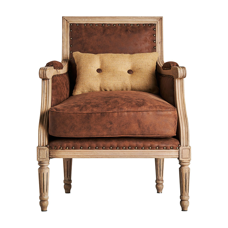 Sillón sampzon de estilo colonial fabricado en madera de mango en color marrón combinado con poliéster.