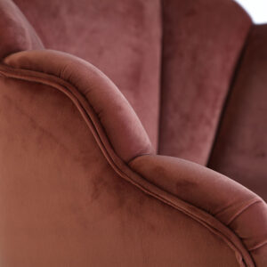 Sillón setti, en color rosa, de estilo shabby chic. Fabricado en madera de pino, combinado con madera abedul y terciopelo. Producto desmontable.