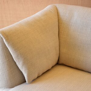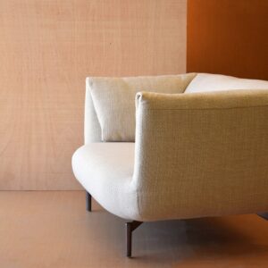BUTACA DE ESTÉTICA MODERNA Y FORMAS REDONDEADAS TAPIZADA EN TONO MARFIL. DESTACA POR SU VOLUMEN LOS DETALLES EN LA DOBLEZ DE LOS REPOSABRAZOS Y LA CURVA SUTIL EN EL BORDE DEL ASIENTO REFORZANDO MÁS LA SENSACIÓN DE COMODIDAD QUE TRANSMITE ESTE DISEÑO.LAS PATAS EN METAL CON UN ACABADO EN NÍQUEL OSCURO CONTRASTAN CON EL TAPIZADO EN TONOS CLAROS Y TEXTURA NATURAL DEL ASIENTOY LA UNION ENTRE AMBOS ELEMENTOS ESTÁ PENSADA CON LA INTENCION DE DOTAR DE LIGEREZA AL CONJUNTO. ELEGANTE Y DE LÍNEAS DEFINIDAS ESTA BUTACA ENCAJA EN ESTILOS DE DECORACION DIVERSOS TANTO EN DECORACIONES MINIMALISTAS COMO MÁS DESENFADAS Y DE TENDENCIA.TELA N6