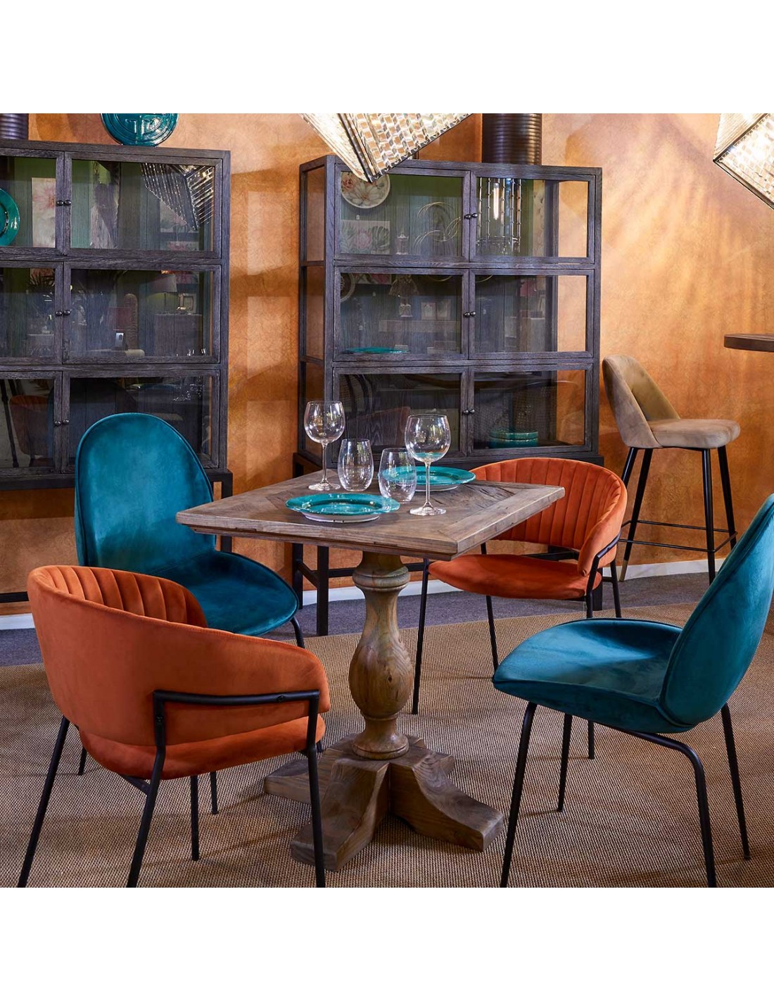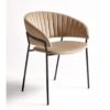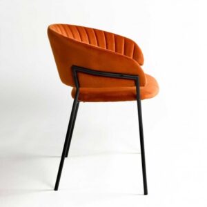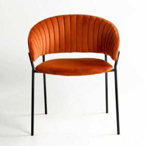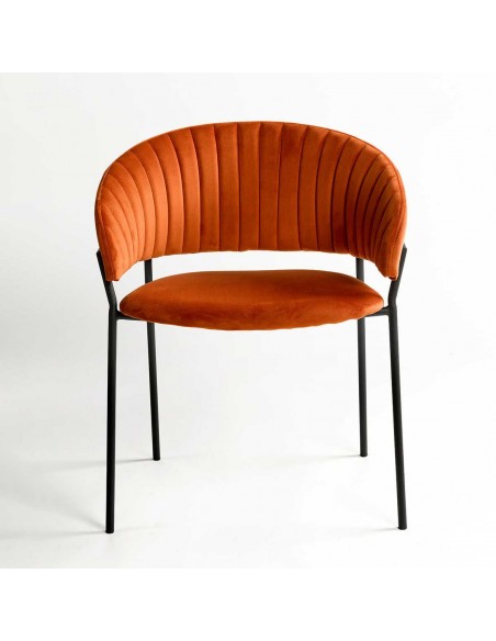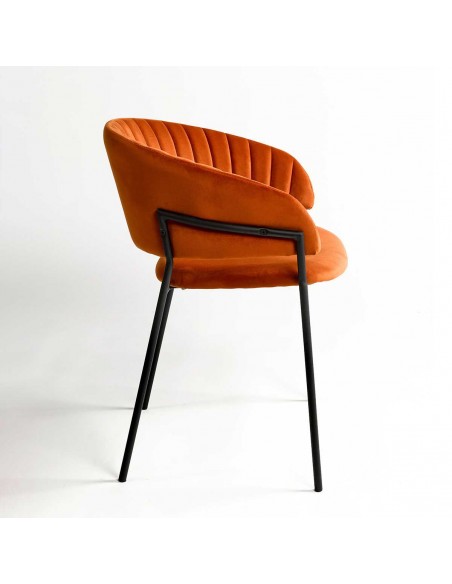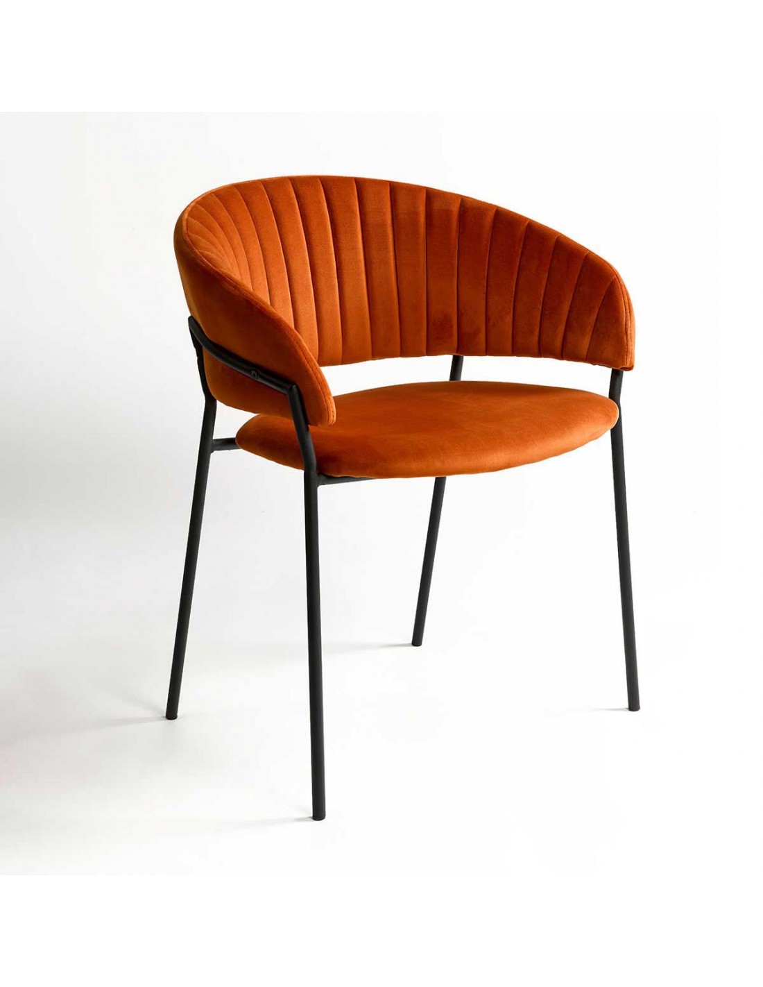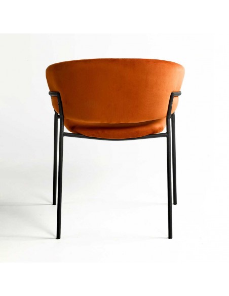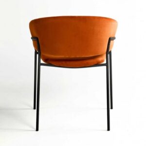 Sillón de tapicería en color caldera y pata de metal en color negro.