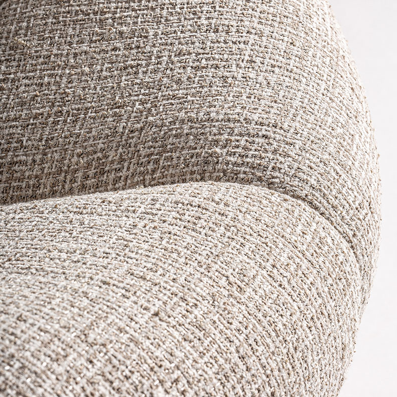 Sillón teglio de estilo art deco fabricado en poliéster en color beige combinado con acero.