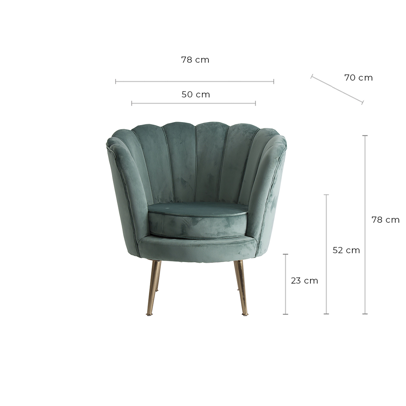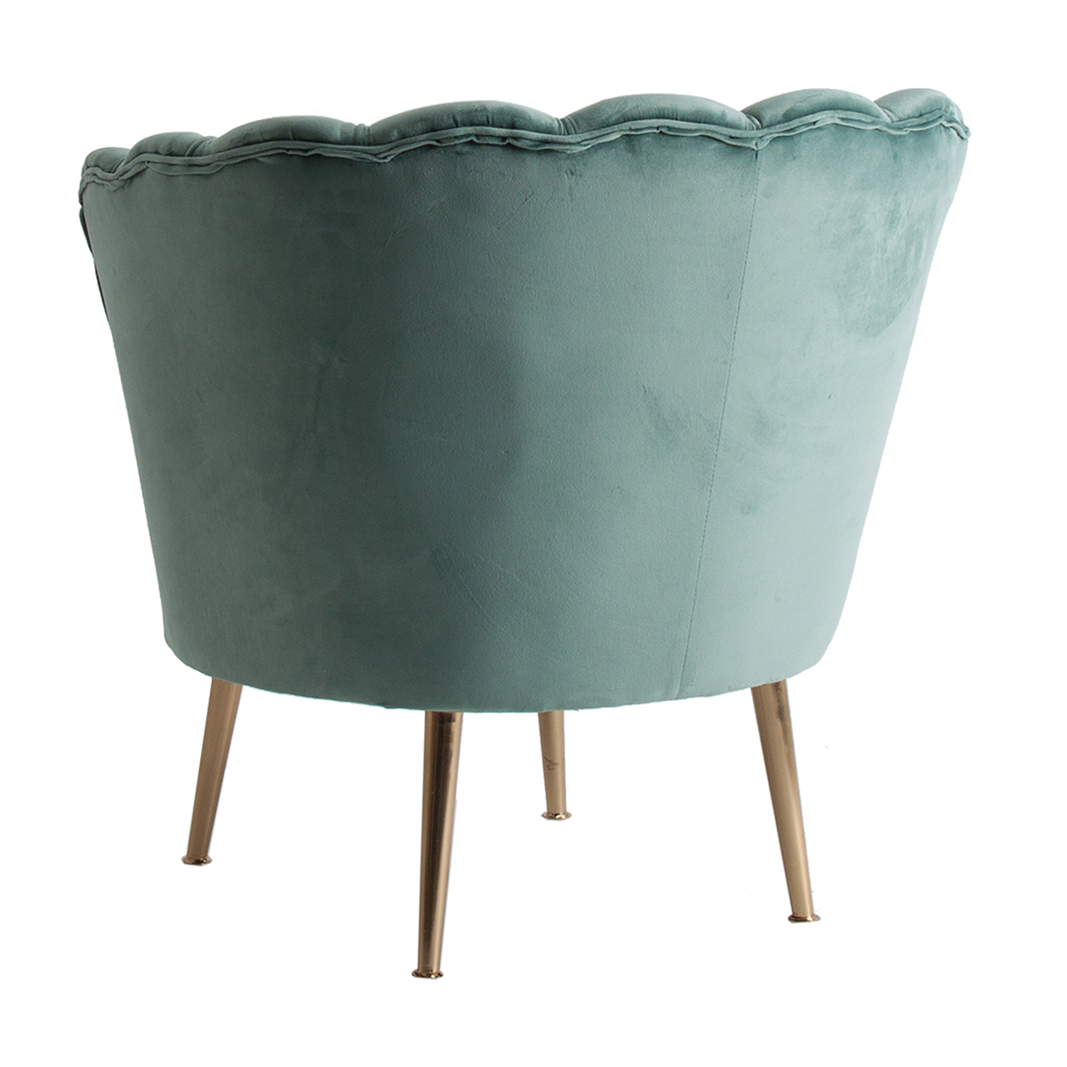 SILLÓN TERVI, EN COLOR TURQUESA, DE ESTILO SHABBY CHIC. FABRICADO EN TERCIOPELO, COMBINADO CON DM Y ACERO. PRODUCTO DESMONTABLE.