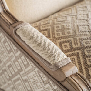 • Sillón tulle de estilo colonial fabricado en madera de mango en color marrón combinado con poliéster en color beige. Producto desenfundable.
