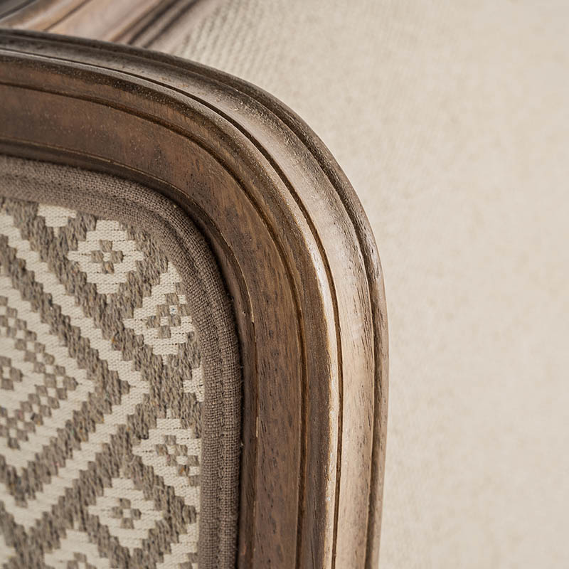 Sillón ruoms en color gris natural de estilo colonial. Fabricado en madera de mango combinado con poliéster.