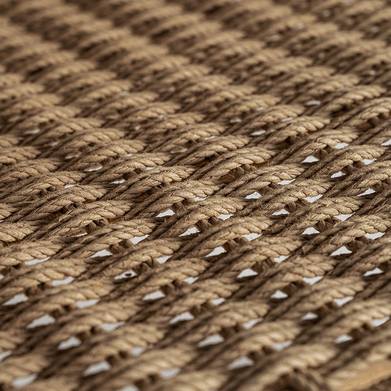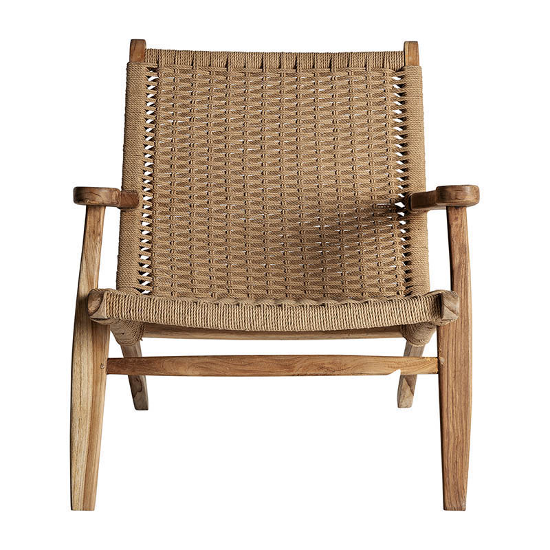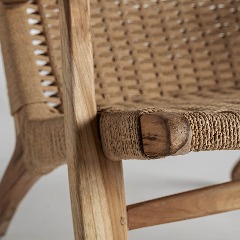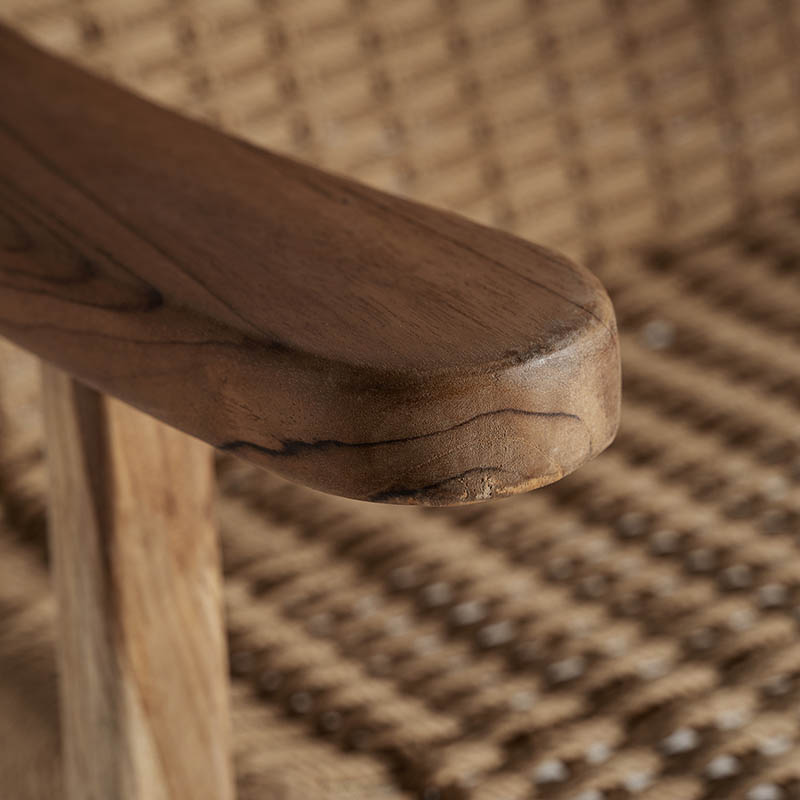 Sillón vaduz de estilo colonial fabricado en madera de teka en color marrón combinado con fibra natural.