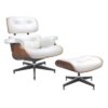 SILLÓN Y REPOSAPIES DE PIEL Y MADERA
