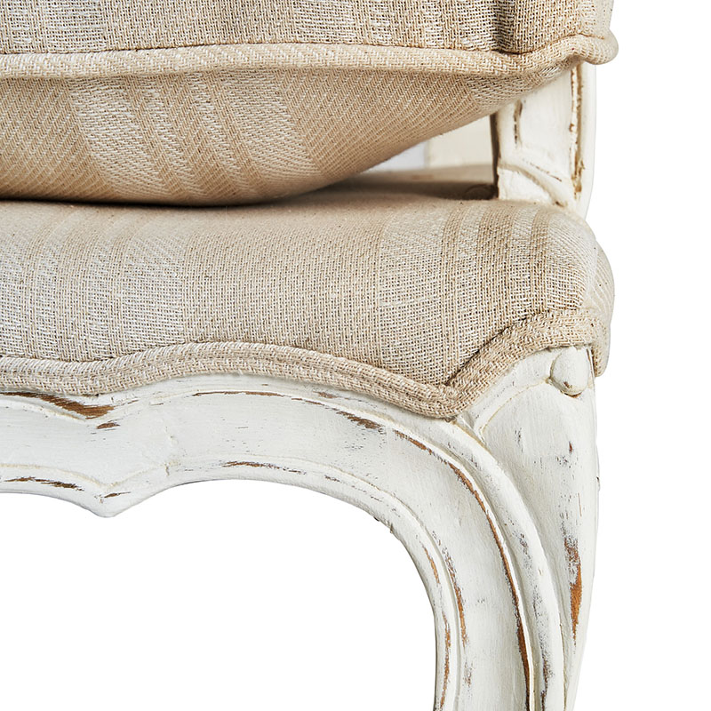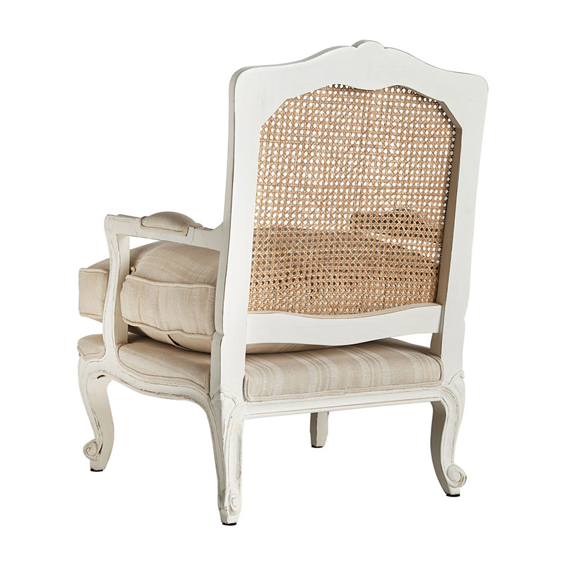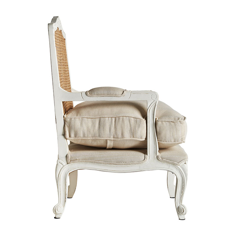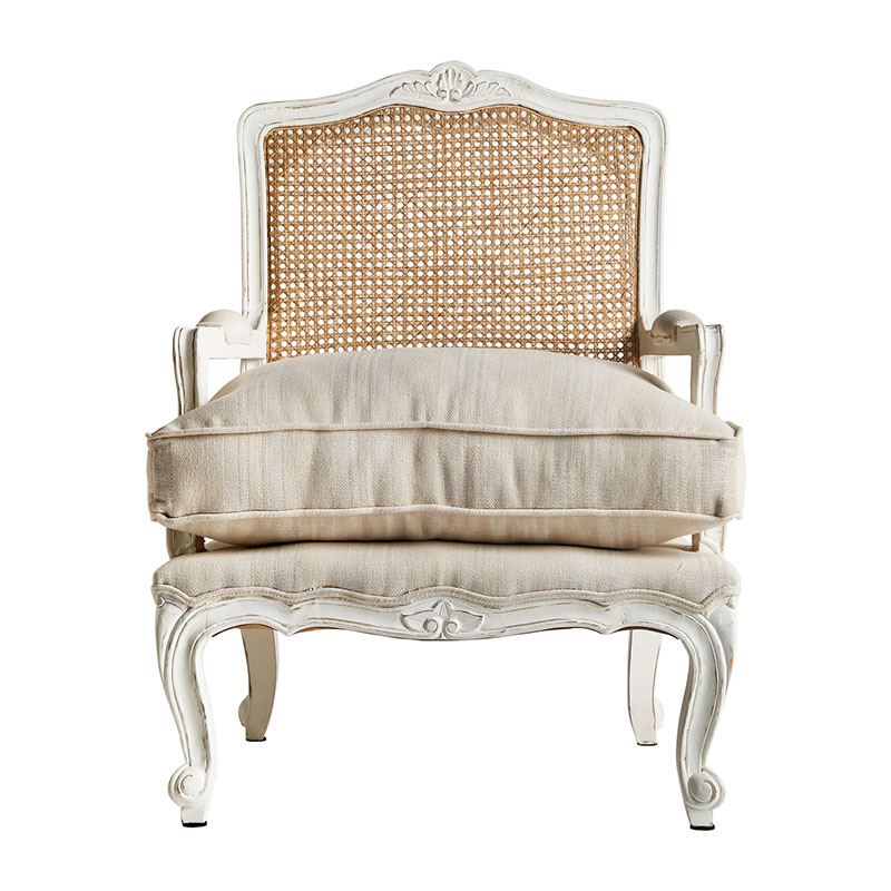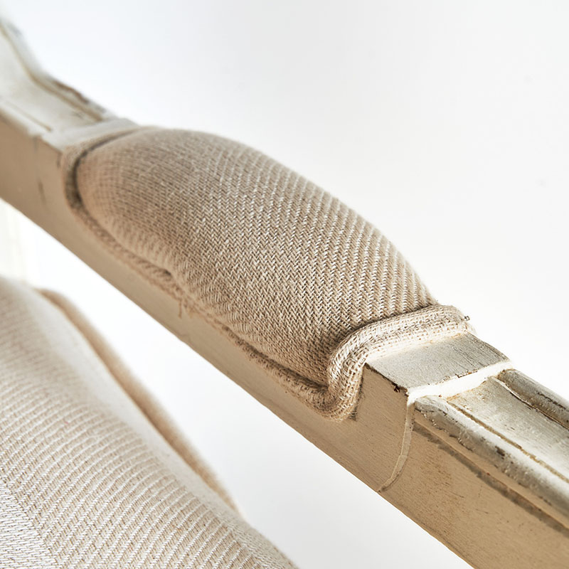 Sillón zwet, en color blanco roto decapado, de estilo clásico. Fabricado en madera de mango, combinado con algodón. Producto desmontable, desenfundable.