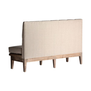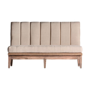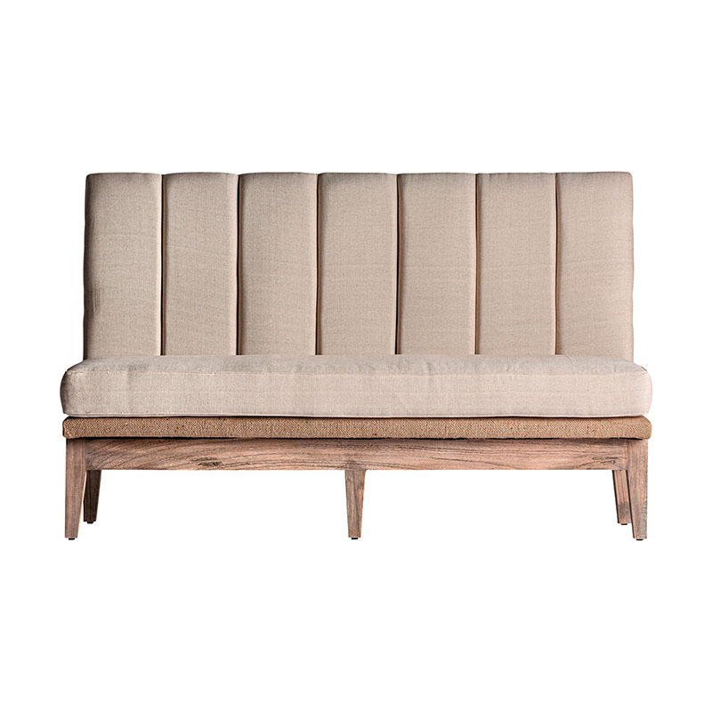 Sofá Bar retz de estilo provenzal fabricado en madera de teka en color blanco roto combinado con lino. Producto desenfundable.