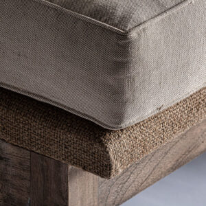 Sofá bar mutzig de estilo colonial fabricado en madera de mango en color beige combinado con poliéster y espuma. Producto desenfundable.