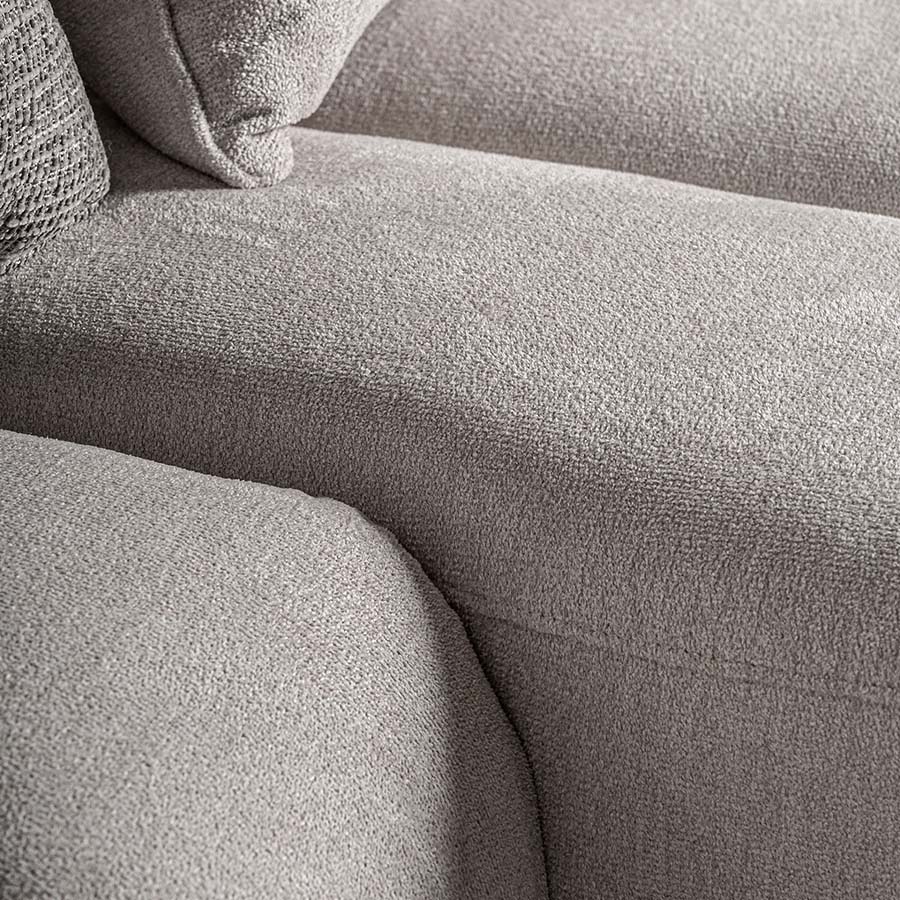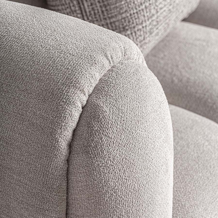 Sofá carceri de estilo art deco. Fabricado en poliéster en color blanco roto combinado con madera eucalipto y espuma. Tejido garden con acabado especial resinado. Producto desmontable.