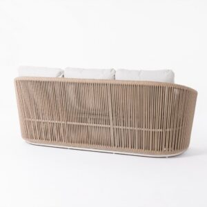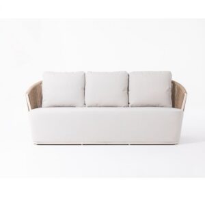 Sofá para exterior de cuerda y aluminio con estructura de aluminio en color IVORY y respaldo con cuerda formando líneas rectas. Disponible en más medidas y acabados. Se venden por separado.