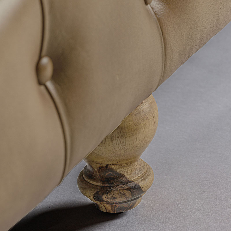 Sofá Elkins de estilo vintage fabricado en piel en color marrón combinado con madera de pino.
