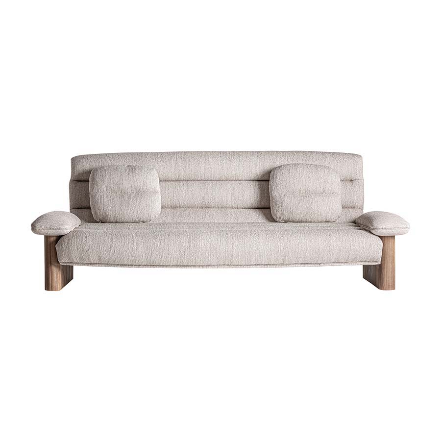 Sofá Gore de estilo vintage fabricado en madera tropical en color marrón combinado con poliéster en color beige. Producto desenfundable.