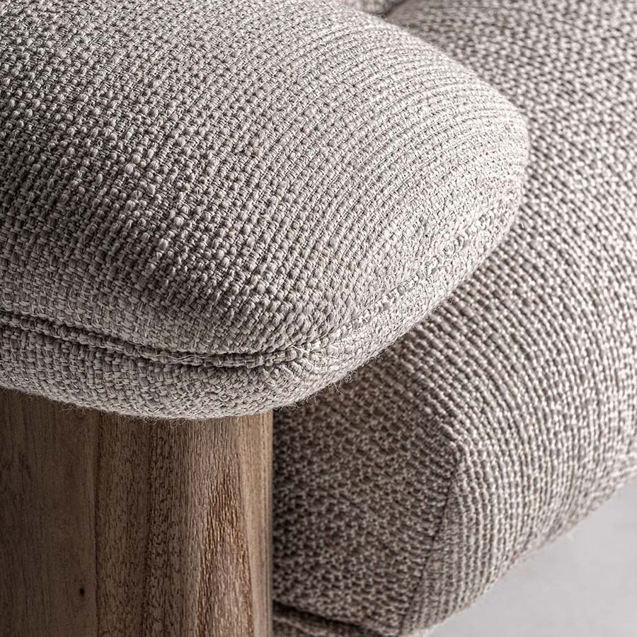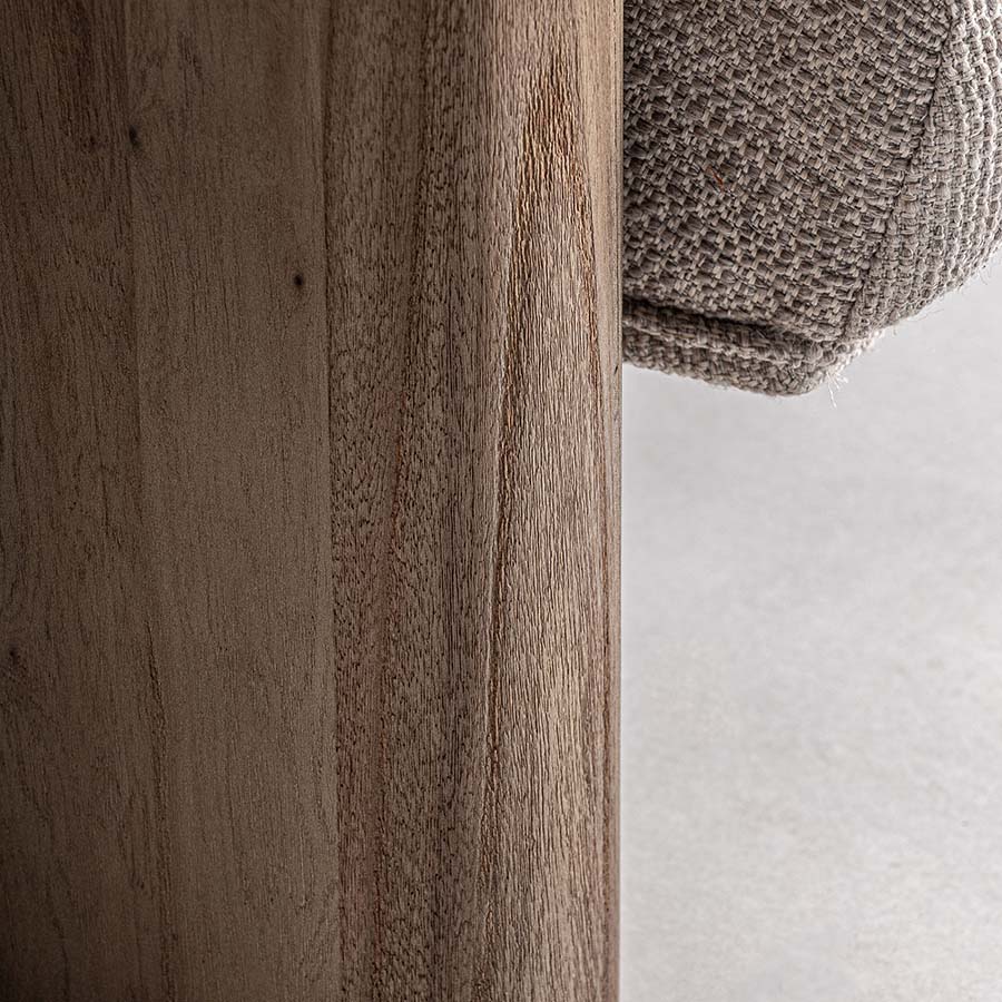 Chaise longue trena de estilo boho fabricado en madera de teka reciclada en color marrón combinado con polipropileno reciclado en color beige y espuma. Producto desmontable desenfundable.