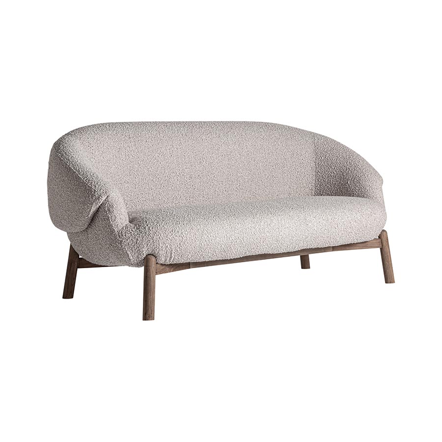 Sofá Jacquard de estilo contemporáneo fabricado en madera de olmo en color marrón claro combinado con poliéster en color beige.