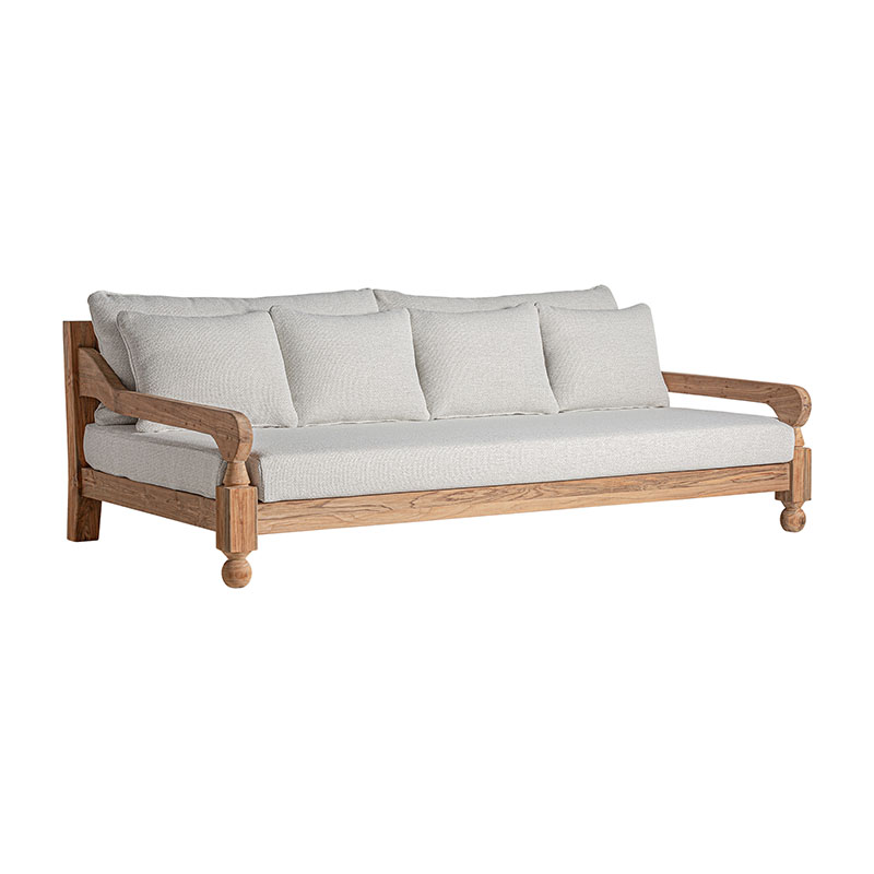 Sofá jodphur de estilo colonial fabricado en madera de teka reciclada en color marrón con acabado natural combinado con polipropileno reciclado en color blanco y espuma. Producto desmontable desenfundable. Compatible con: 34420 34834.
