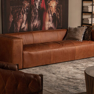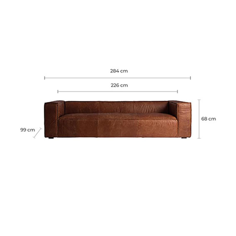 Sofá Kurza de estilo vintage fabricado en cuero vaca en color marrón combinado con madera de abeto y espuma. Producto desmontable.