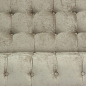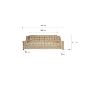 Sofá capitoné lutsen, en color visón, de estilo clásico. Fabricado en poliéster, combinado con madera de pino y espuma.