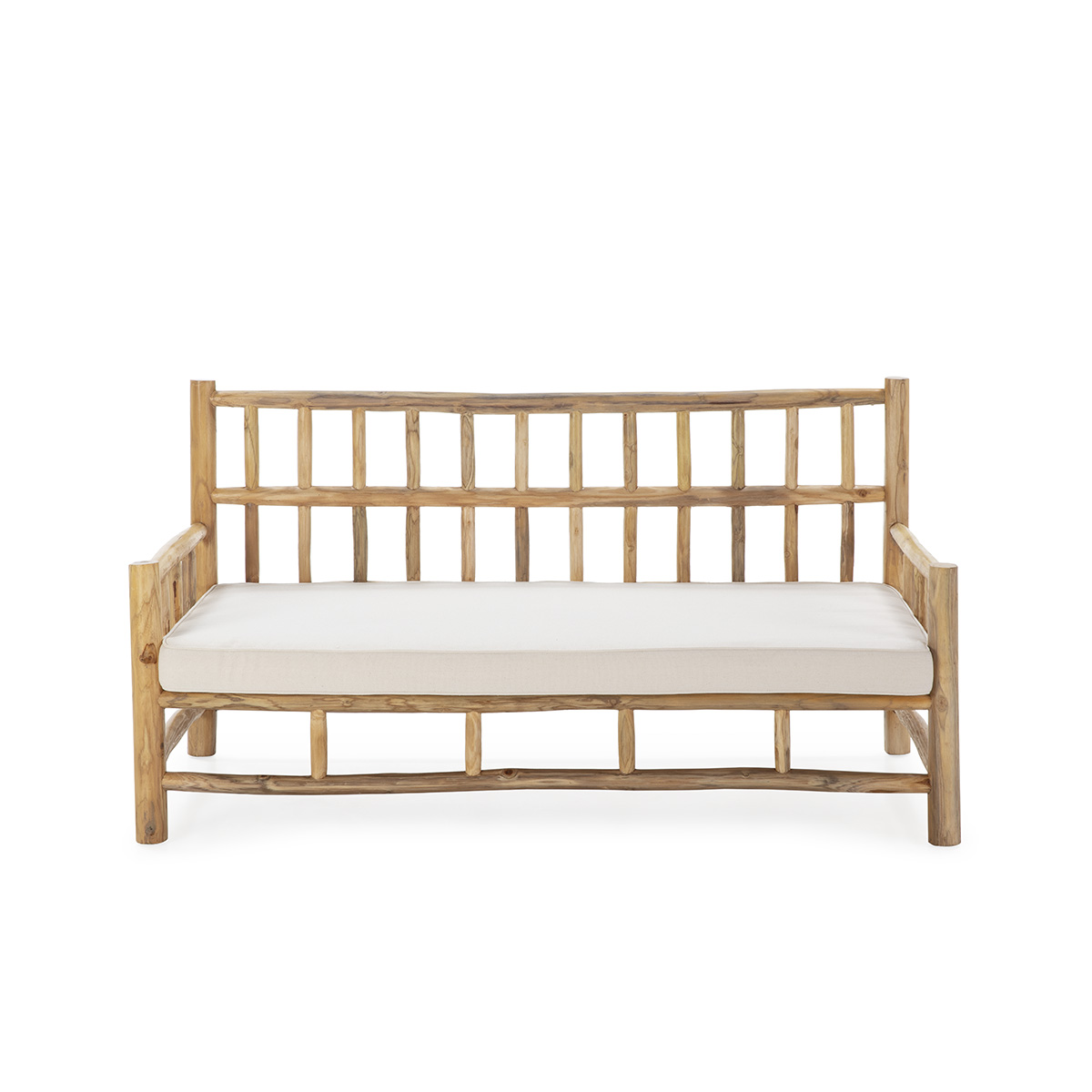 Rama de teca natural con protección somera de nitrocelulosa: Le confiere a la madera distintas propiedades: Realza la veta, aporta alta resistencia a las manchas y ofrece un tacto agradable. La teca envejece bien y si se trata con aceite de teca la resistencia al exterior es alta.