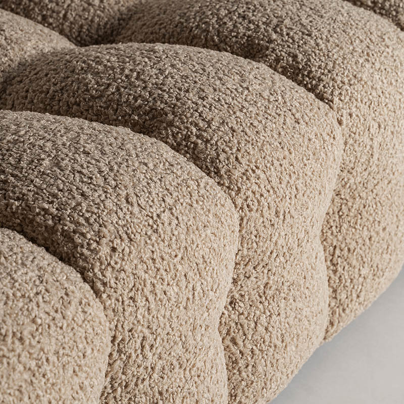 Sofá maurs de estilo art deco fabricado en poliéster en color marrón claro combinado con madera de pino en color marrón y espuma. Producto desenfundable.