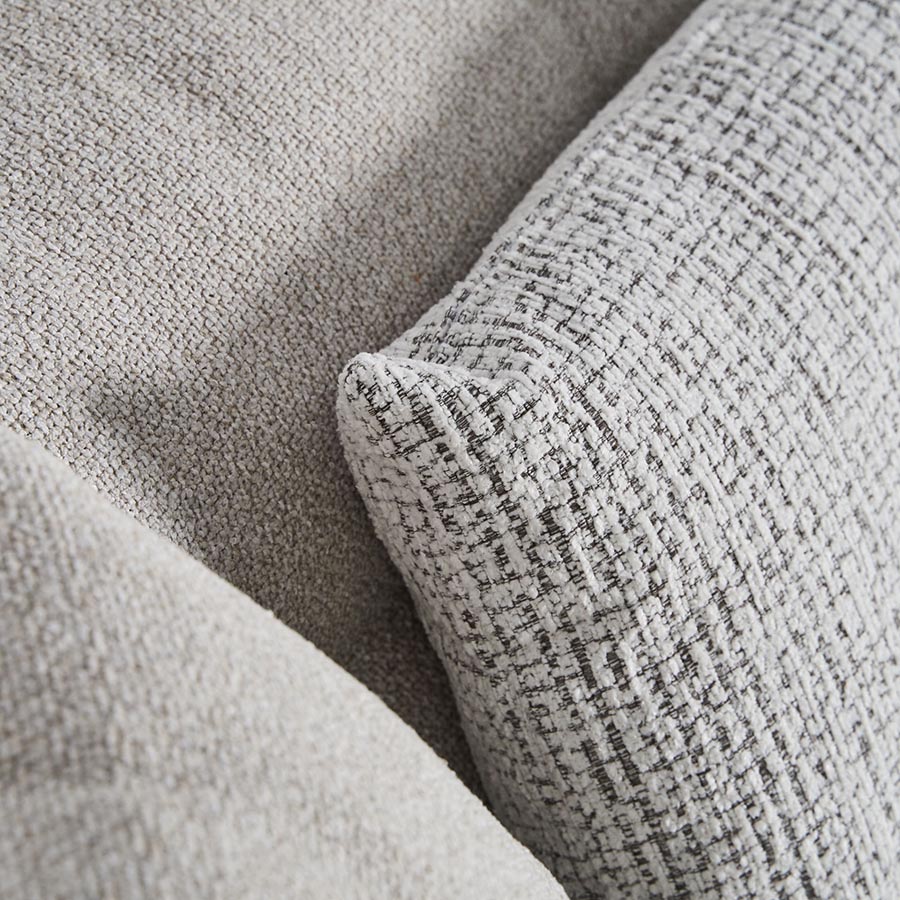 Sofá modular Brenod de estilo contemporáneo fabricado en poliéster en color blanco roto combinado con madera de alerce y espuma. Producto desmontable desenfundable. Compatible con: 37245.