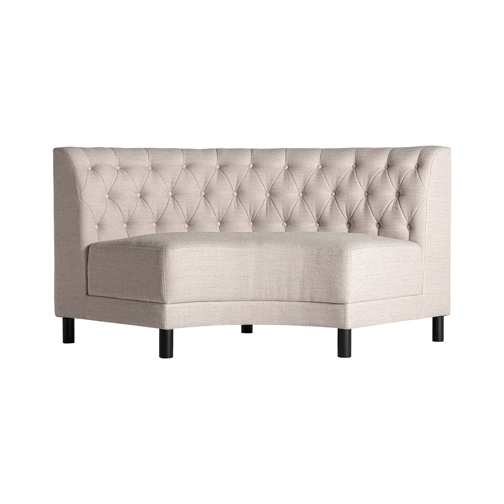 Módulo sofá esquinero Vittel de estilo art deco fabricado en poliéster en color beige combinado con madera de pino en color marrón claro con acabado natural. Producto desenfundable. Compatible con: 34464.