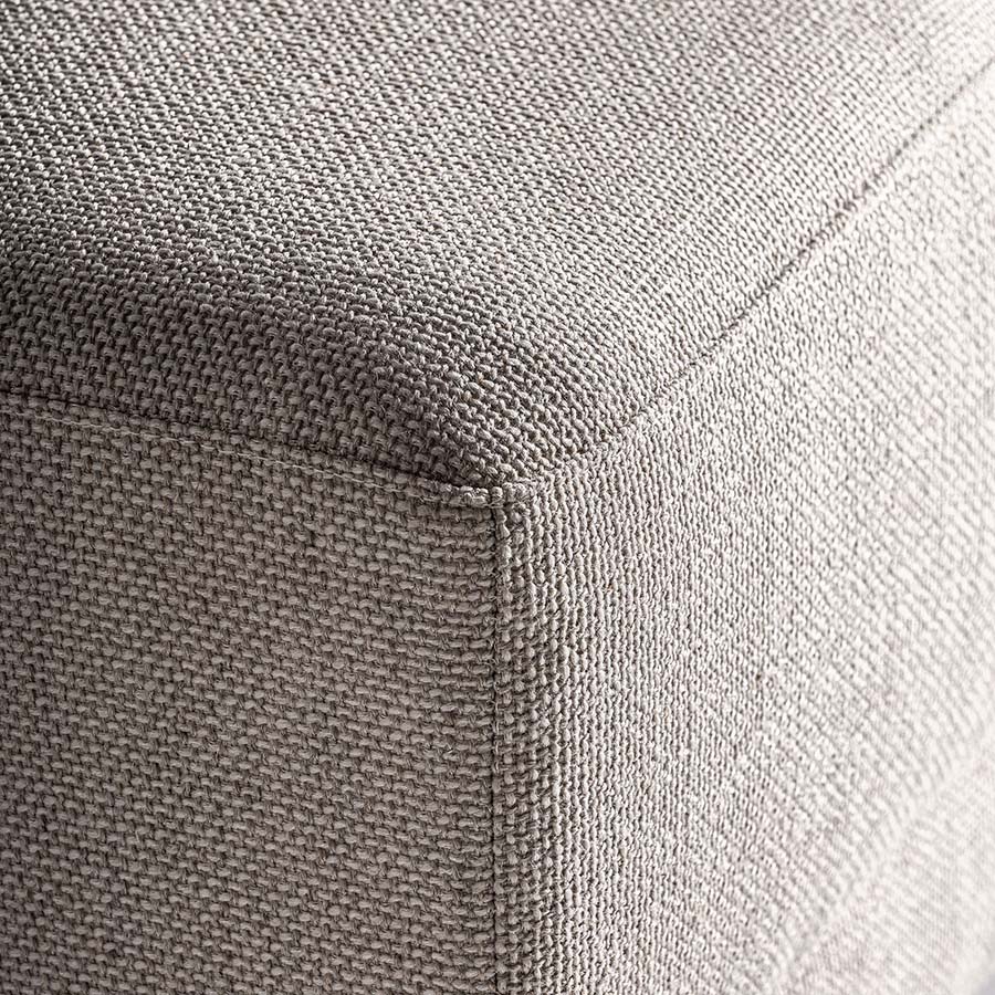 Módulo sofá central Brouville de estilo contemporáneo fabricado en poliéster en color beige con acabado jaspeado combinado con espuma en color blanco y madera de caucho en color negro.
