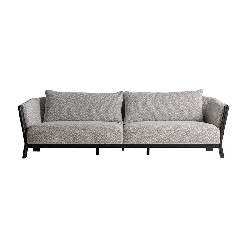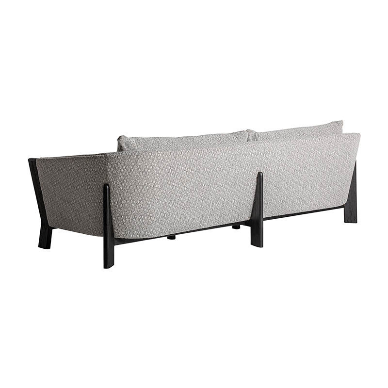 Sofá nara de estilo contemporáneo fabricado en poliéster en color blanco negro con acabado jaspeado combinado con madera roble en color negro. Producto desenfundable.