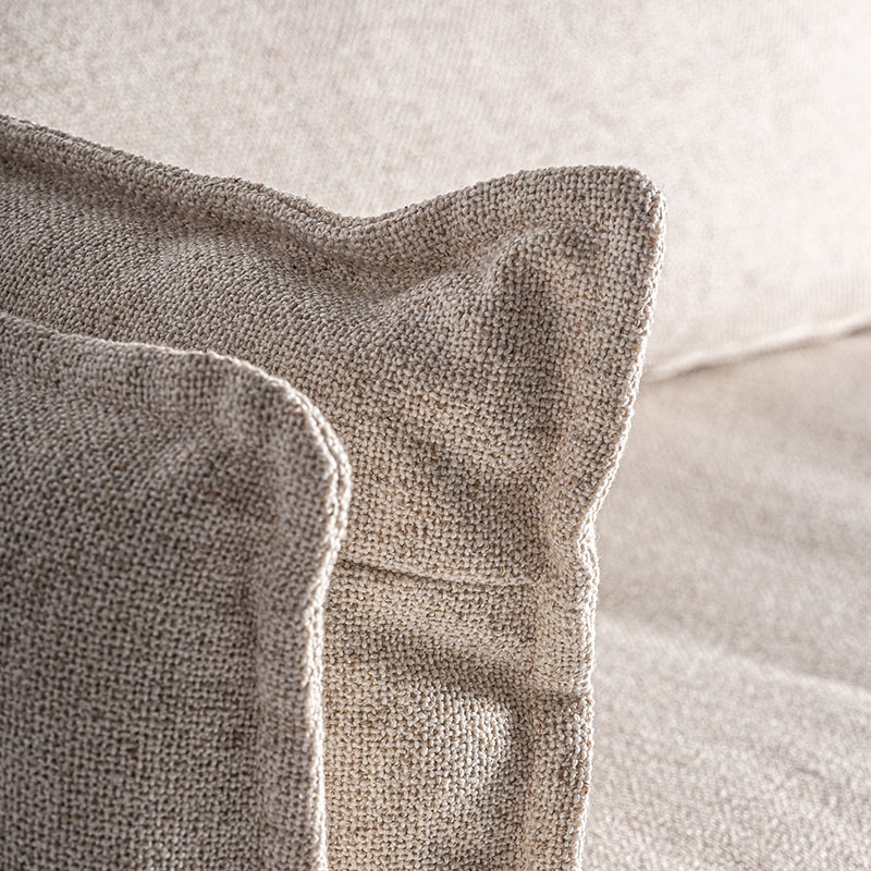 Sofá selmes de estilo shabby chic fabricado en poliéster en color blanco roto combinado con espuma y madera de pino. Producto desmontable desenfundable.