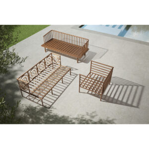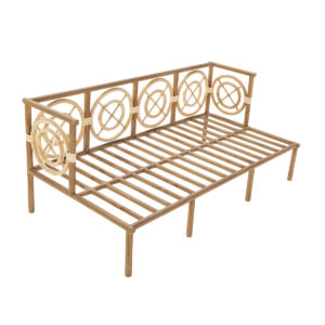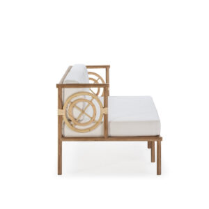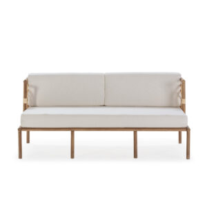 Nuevo sofá de madera de taca y tela natural en color blanco