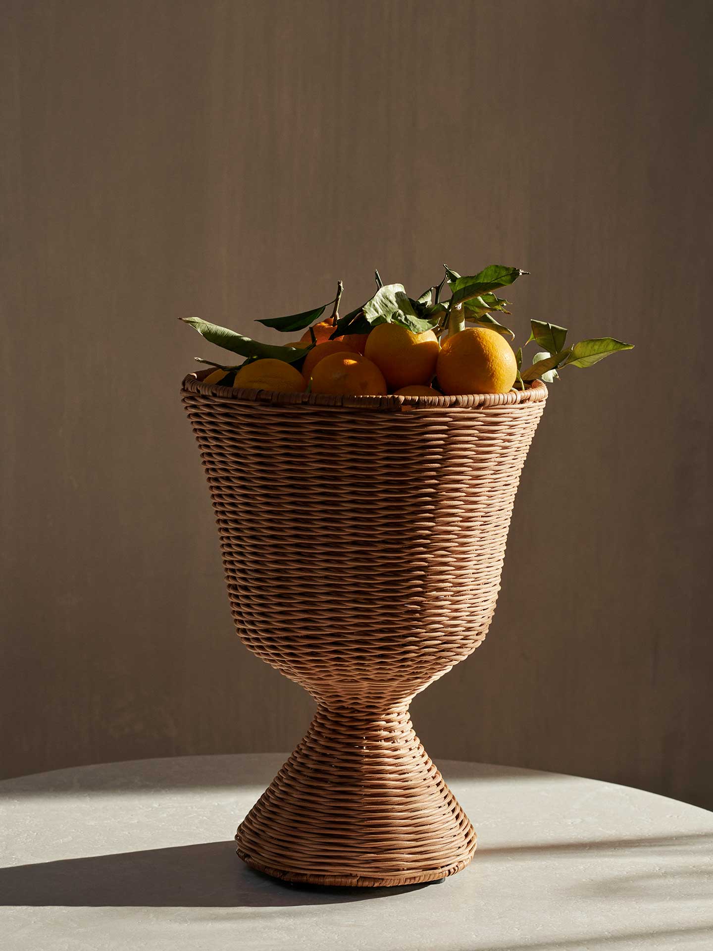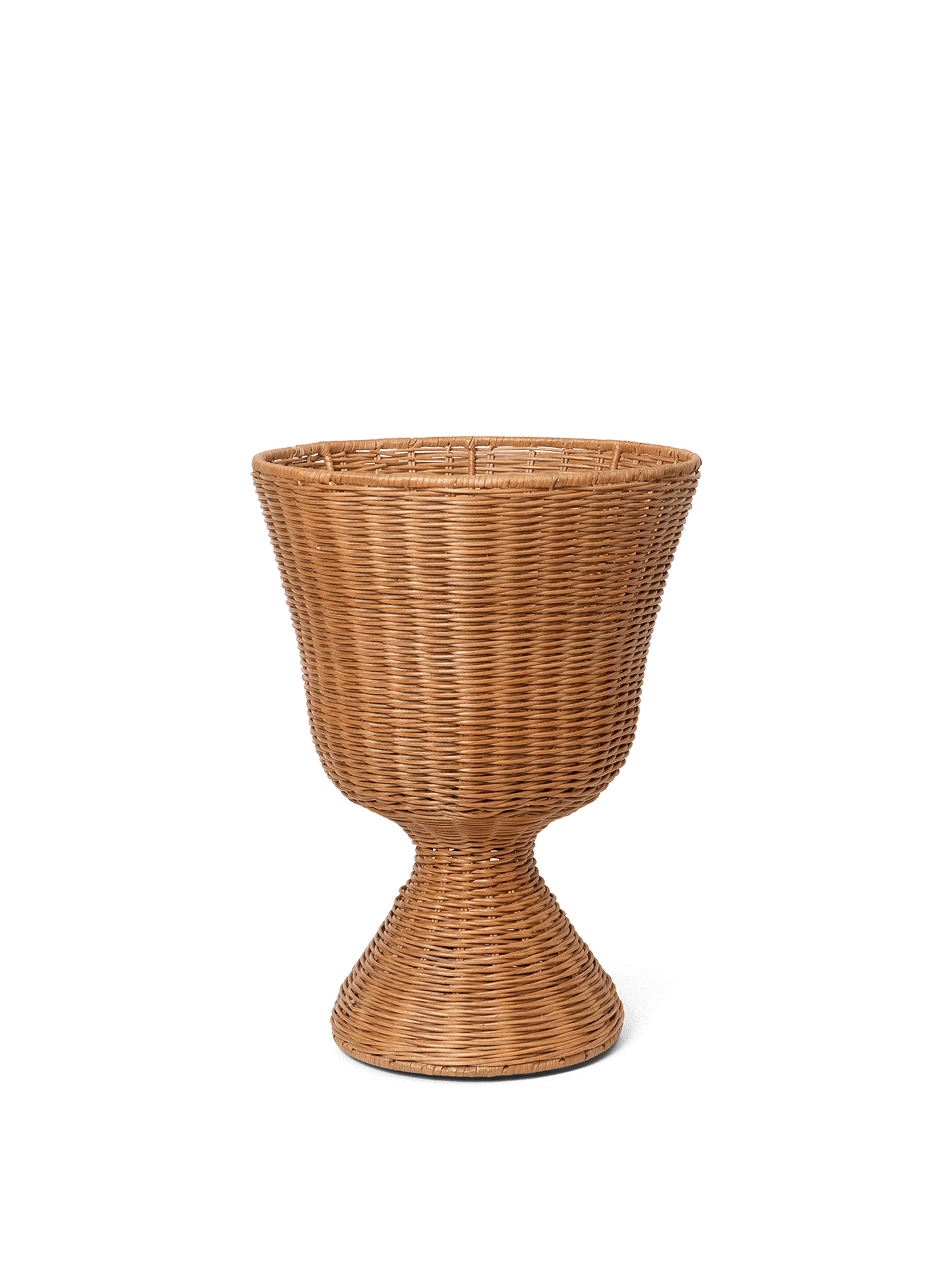 El soporte para plantas Agnes, que sirve como forma decorativa de elevar y exhibir sus plantas favoritas, está diseñado como un pedestal, que aporta instantáneamente carácter y tacto a cualquier habitación. El soporte para plantas está trenzado a mano, hecho de ratán natural con una estructura de hierro que le da al ingenioso recipiente una expresión artesanal única.