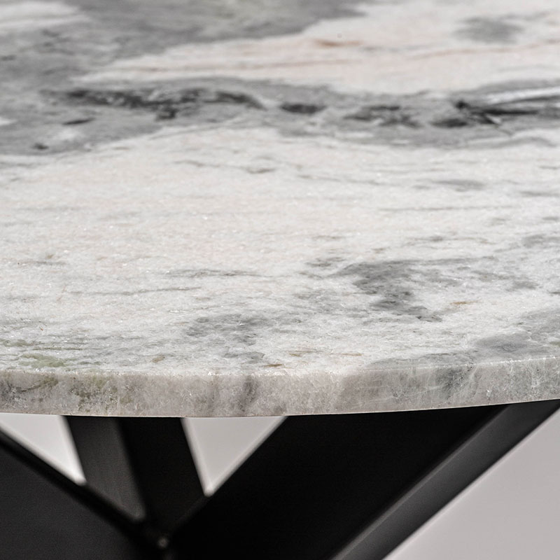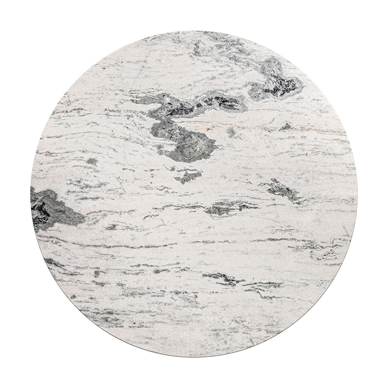 Tablero mesa redondo sanza, en color blanco, de estilo art deco. Fabricado en mármol.