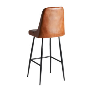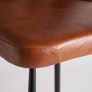 Taburete Dexter de estilo vintage fabricado en hierro en color negro combinado con cuero en color marrón y espuma. Producto desmontable.