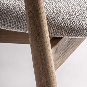 Taburete dilbeek de estilo contemporáneo fabricado en madera de haya en color marrón claro con acabado mate combinado con espuma y poliéster en color gris con acabado jaspeado.