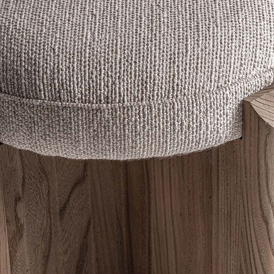 Taburete Jacquard de estilo contemporáneo fabricado en madera de olmo en color marrón claro combinado con poliéster en color beige.
