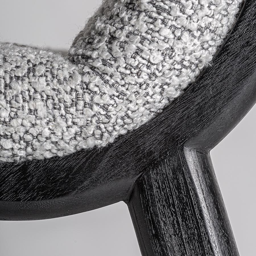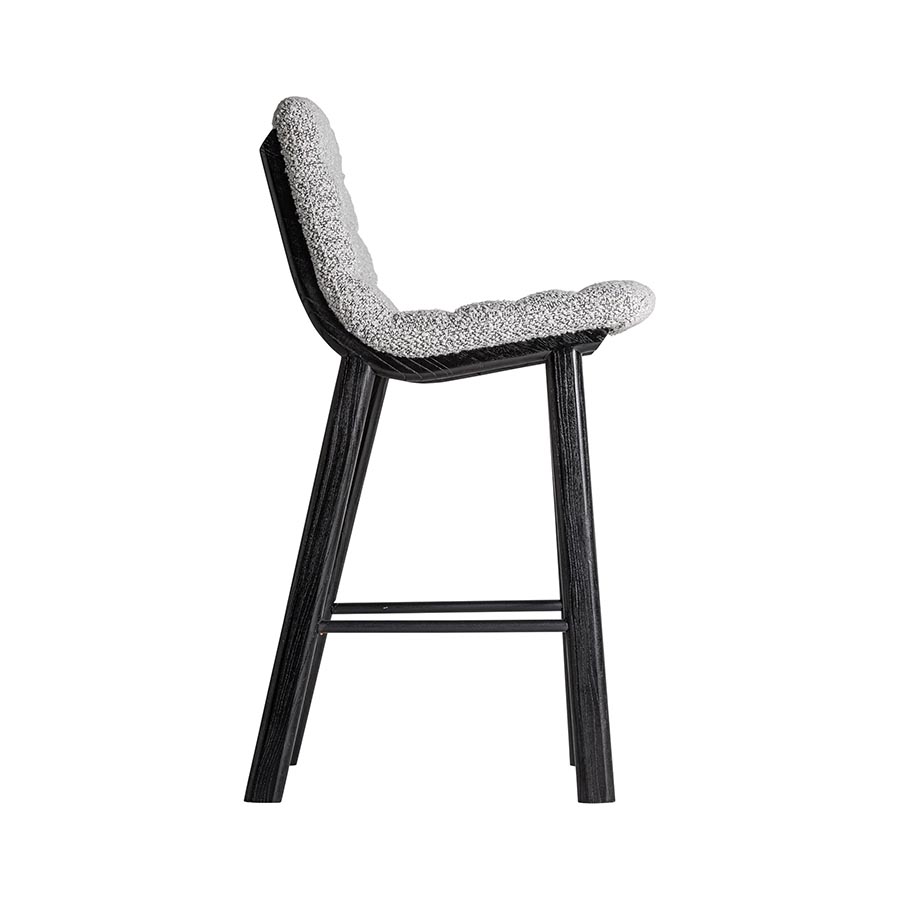 Taburete Jacquard de estilo contemporáneo fabricado en madera roble en color negro combinado con poliéster en color gris.