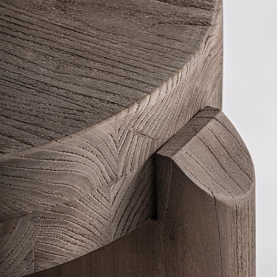 Taburete Jacquard de estilo contemporáneo fabricado en madera de olmo en color marrón.