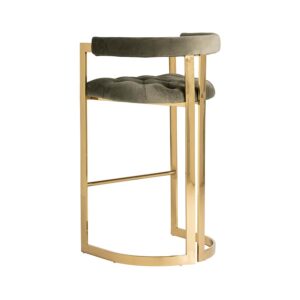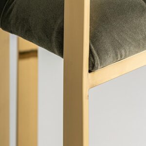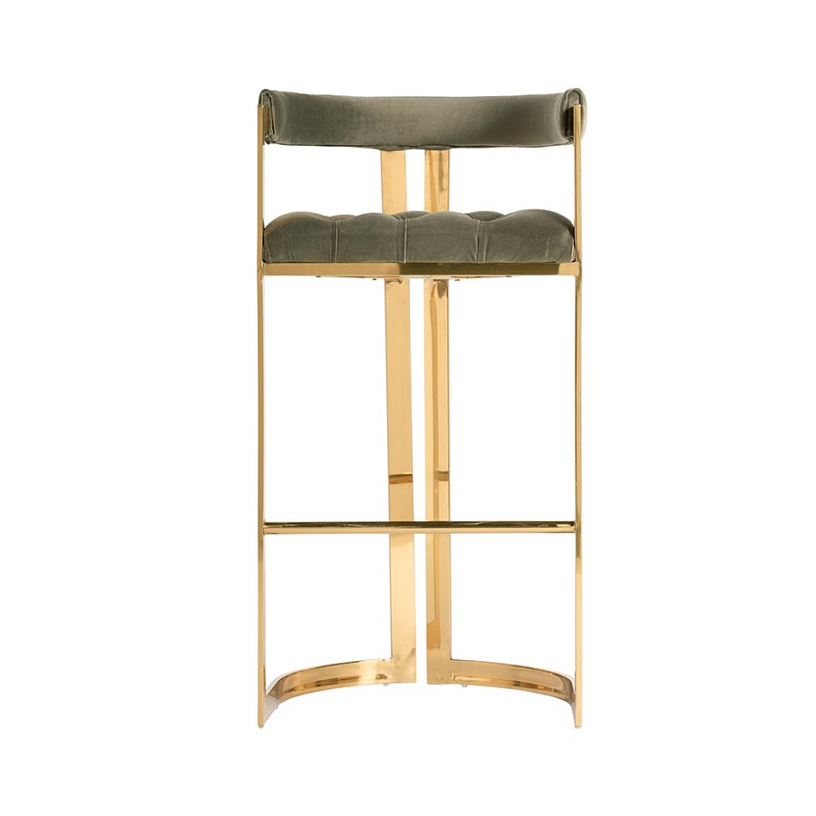 Taburete mondsee de estilo art deco fabricado en acero inoxidable en color tonos en verde combinado con madera de pino y madera dm.
