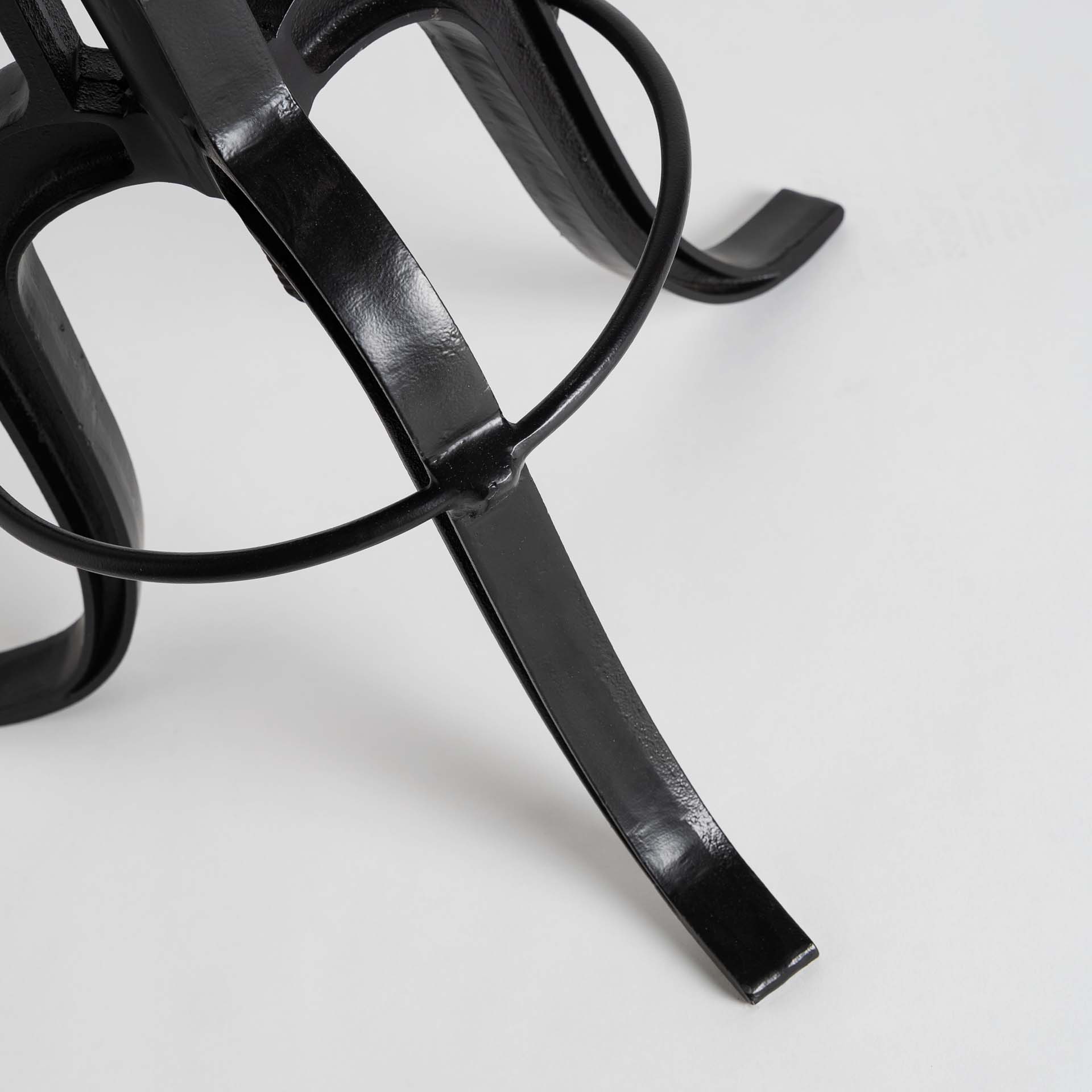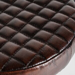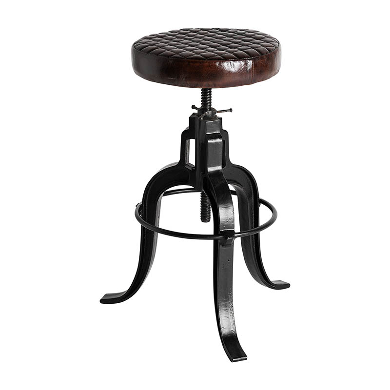 Taburete ripley de estilo vintage fabricado en hierro en color negro combinado con cuero en color marrón.